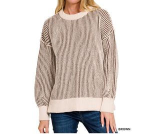 Mix & Match Checkered Denim Sleeve Knit Sweater