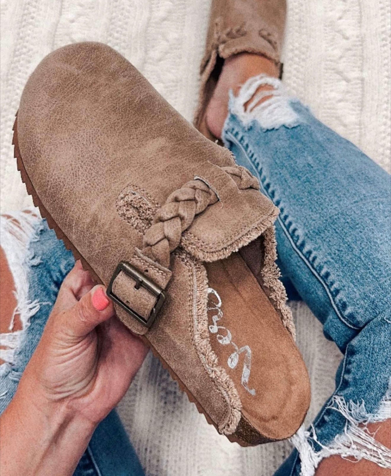 Iris 3 Very G Women's Slip on Mule with braid and buckle detail and molded footbed for all day comfort
