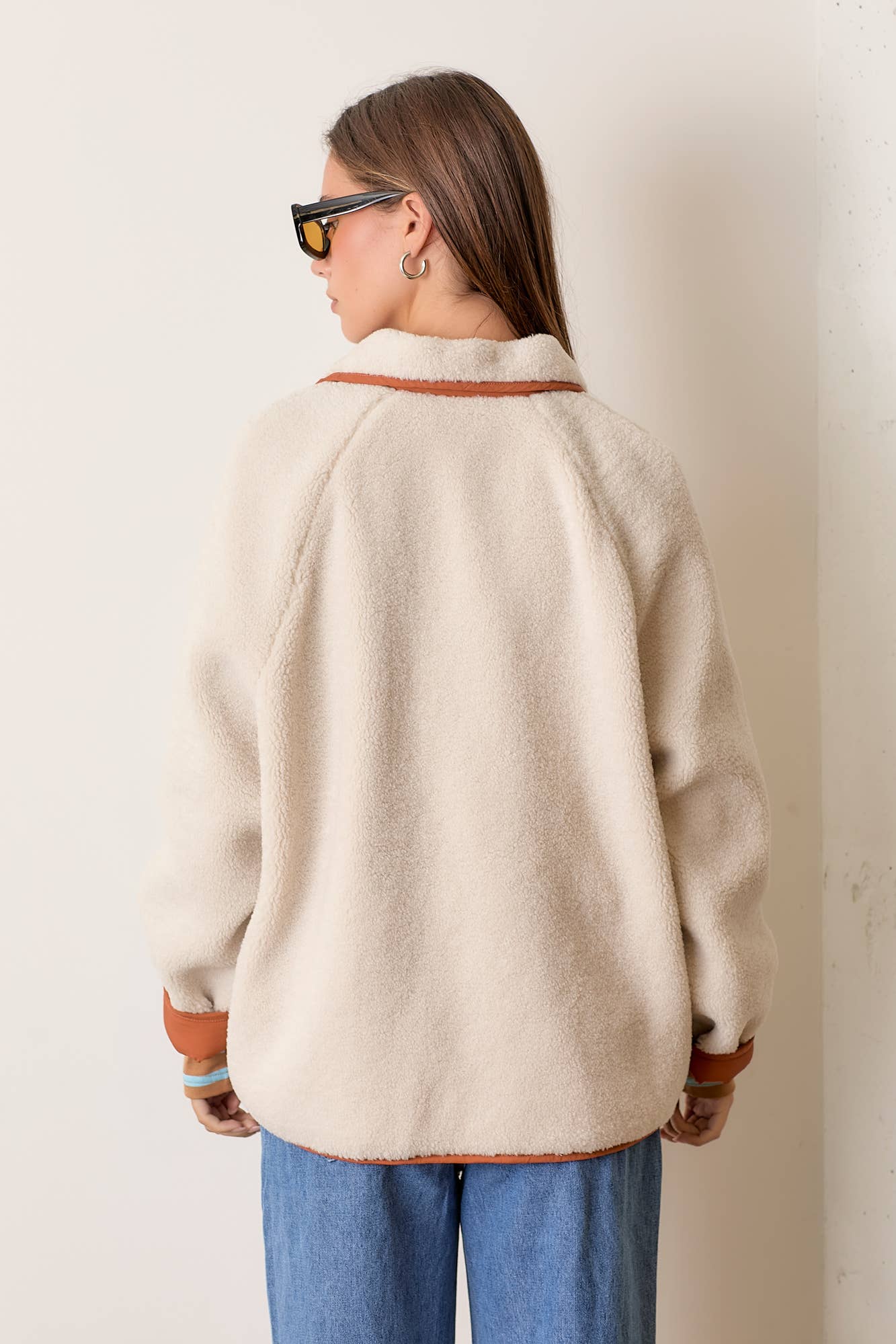 - Solid mix-media - Dual reversible jacket - High-neck - Long sleeves - Front dual snap buttoned closure - Front pockets outside, Side pockets inside