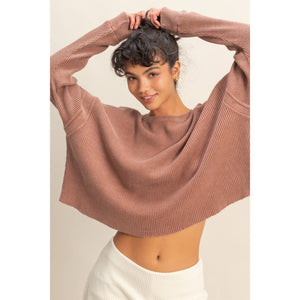 In My Comfy Era Mineral Washed Ribbed Split Neck Long Sleeve Knit Top