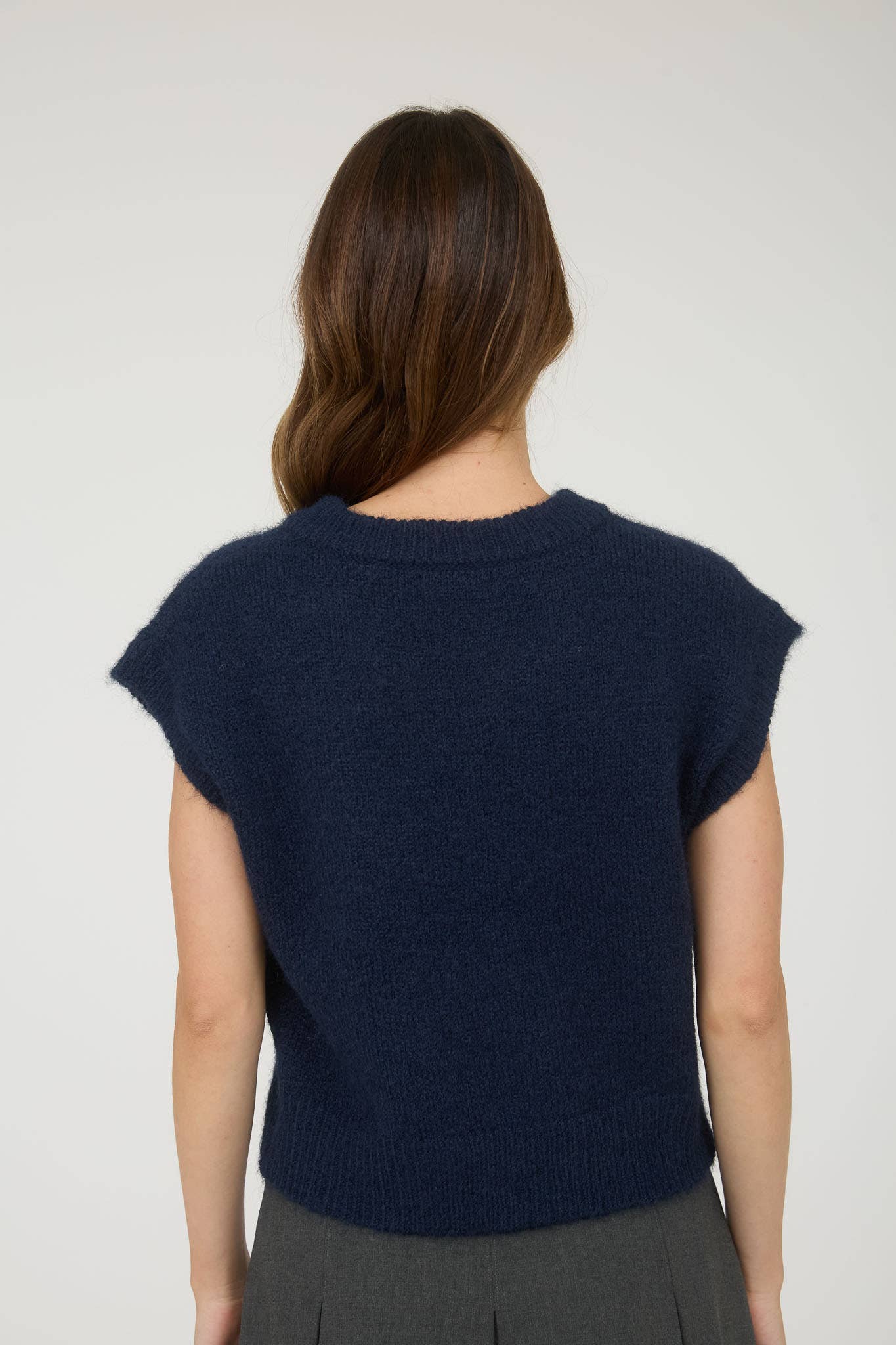 V NECKLINE, SLEEVELESS, EXTENDED SHOULDER, SWEATER KNIT, ARGYLE PATTERN SWEATER VEST